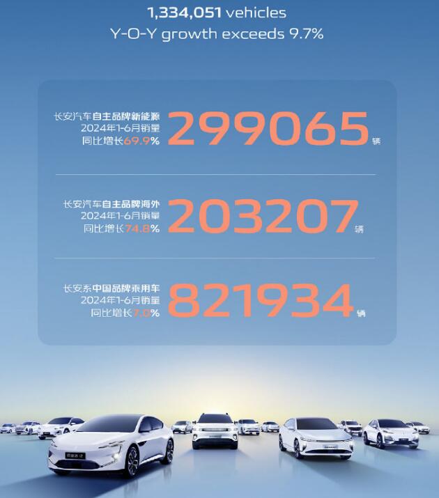 7月3日消息,長安汽車今晚公布了2024 年1-6月銷量快報。官方表示,今年上半年的銷量創下了 7 年來的新高:1334051 輛,同比增長 9.7%。