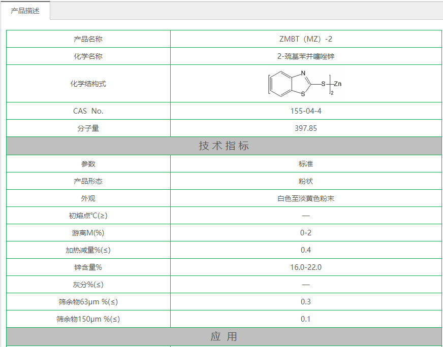 化學名稱:2-硫醇基苯 并噻唑 鋅鹽