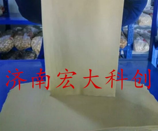 使用宏大科創牌使用雙層豆皮機,機器仿手工成皮,無破爛邊角余料,薄厚程度可調,口感韌性與手工做一致