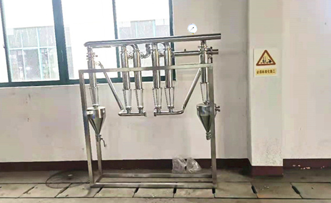 新型淀粉 除沙器機組是一種利用離心分離和重力沉降實現連續固液分離的設備,主要用來qc淀粉 乳中的沙粒和稀泥等,對淀粉 的斑點、白度等質量指標起到關鍵作用。淀粉 除沙器廣泛應用于淀粉 ,醫 藥等行業,特別是水晶粉 絲廠使用xg顯著。bkcs-6新型除沙除泥器機組是根據流體中的固體顆粒在除沙器里旋轉時的篩分原理制成,當淀粉 乳液在平穩的壓力下從除砂進水口以切線進入料筒后,產生強烈的旋轉運動,由于砂和淀粉 乳密度不同,在離心力、向心力、浮力和流體曳力的共同作用下,使密度低的水上升,由出水口排出進入下一級,密度大的砂粒和稀泥由設備底部的排污口排出,從而達到除沙的目的,新型除沙器機組具有除沙率高,工作狀態穩定等優點,此產品是本公司針對東北廠家在薯類淀粉 生產和水晶粉 絲生產過程中出現的泥沙除不盡或泥沙分離不cd而推出的級除沙除泥器機組,此產品壓力高,分離xg好,除沙xg98%以上。