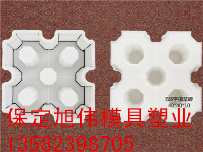 塑料雙八字植草磚模具批發,旭偉模具廠專業生產單八字植草磚模具、雙八字植草磚模具、三八字植草磚模具、五孔植草磚模具、九孔植草轉模具、空心六角植草磚模具、井字植草磚模具、多孔植草磚模具等,而且應用都非常廣泛,比如公路兩旁、公園地面、停車位、小區等都會用到植草磚。雙八字草坪磚模具已經成為了市場上很重要的一個部分,應用在高速高鐵上是屬于國家的工程,但是為了縮短工期,很多工程外包,每年市場上水泥構件的需求量在不斷的增加,隨著生產技術的不斷革新,不斷的增加雙八字草坪磚模具后期使用,促使整個行業不斷的快速發展。我廠生產的塑料雙八字植草磚模具強度高,吸水率低,美觀大方,款式新穎時尚,抗凍性能強,防滑效果好。所以該模具生產的水泥件用于鋪設在城市人行道路及停車場、小區公園等,都具有綠化路面及地面工程的作用。而且經過塑料注塑成型,具有較長的使用壽命,還可以進行回收利用,歡迎新老客戶來廠參觀、選購。