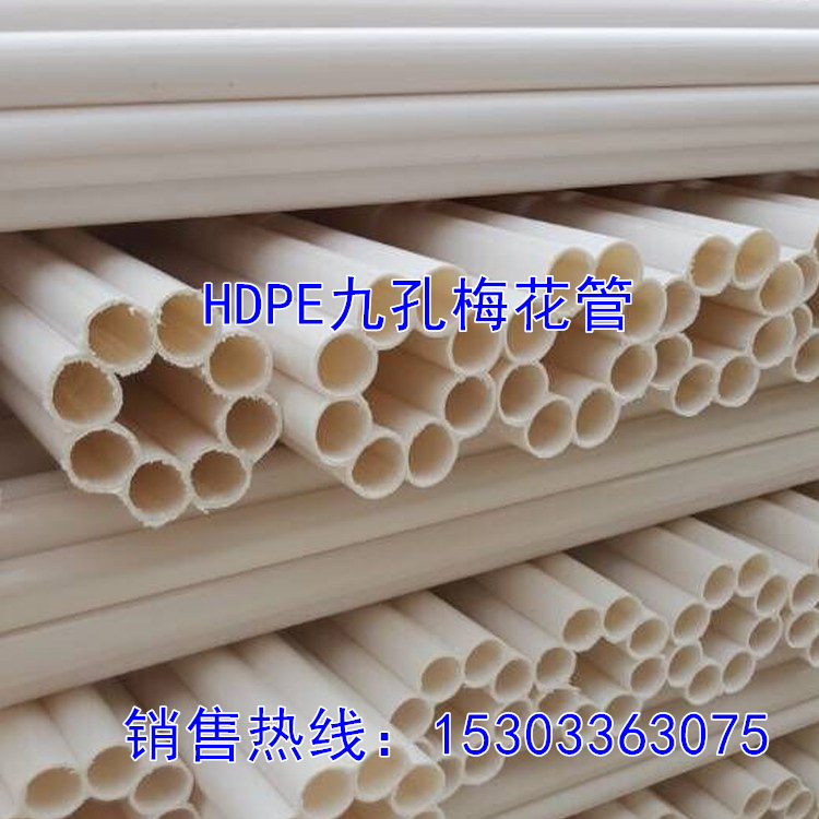 七孔梅花管和五孔梅花管是一次性成型的一體化多孔護套管,施工方便,增加了預埋孔數,提高了施工速度,大大降低了工程單位的材料及施工成本。梅花管是90年代末的新型管材,主要特點是方便經濟,免除二次傳子管,整體工程造價低,并減少管群所占用的人孔及管溝的位置破路面積,是城市通訊管道發展的前景和必然趨勢。安 裝九孔、七孔、五孔梅花管每6米配接頭一個,接頭內有定位槽,安 裝時將管頭與接頭連接緊密,用木板夯實即可。