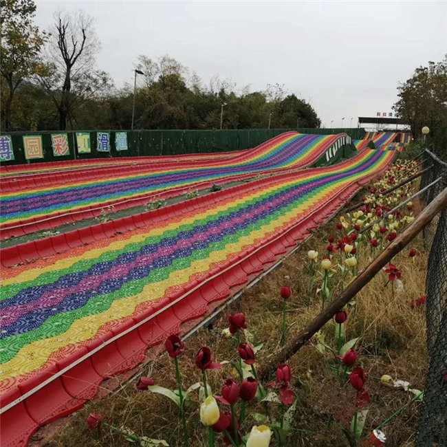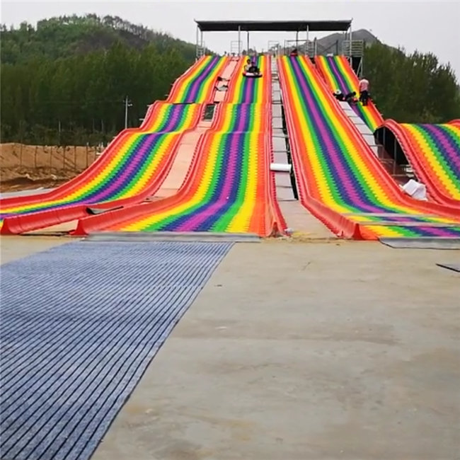 旱滑設備彩虹滑道材料本身是沒問題的,材料用的是hdpe,形狀多為s型,七種至十種顏色非常漂亮!