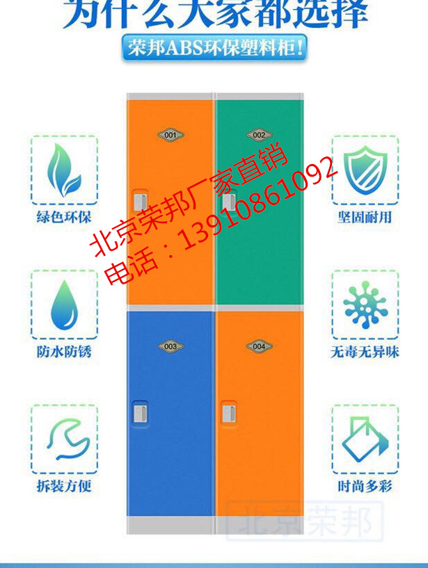材 質:更衣柜全部材質為abs全新工程塑料制成,強度高、韌性好、耐沖擊,不易腐蝕,無毒無味,環保耐用。