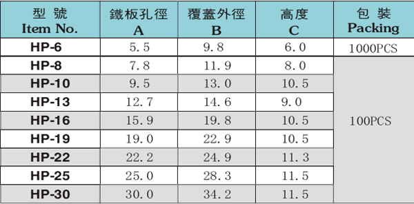 產品名稱: 扣式塞頭hp系列