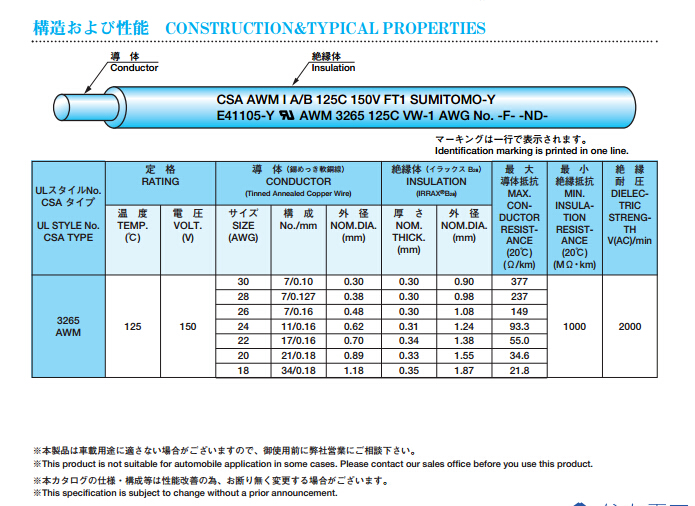 瀏覽:758次[供應]廠家授權代理住友ul3265照射線,耐油耐腐蝕,專業服務