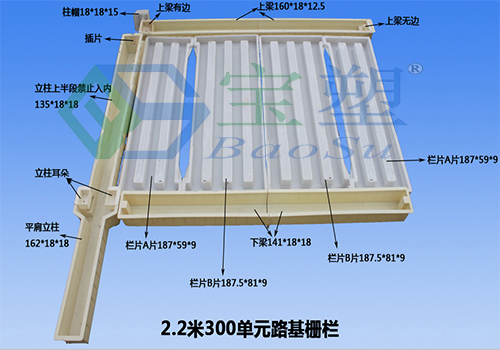 【模具名稱】2.2米300單元高鐵防護柵欄模具【品 牌】保定寶塑模具制造有限公司