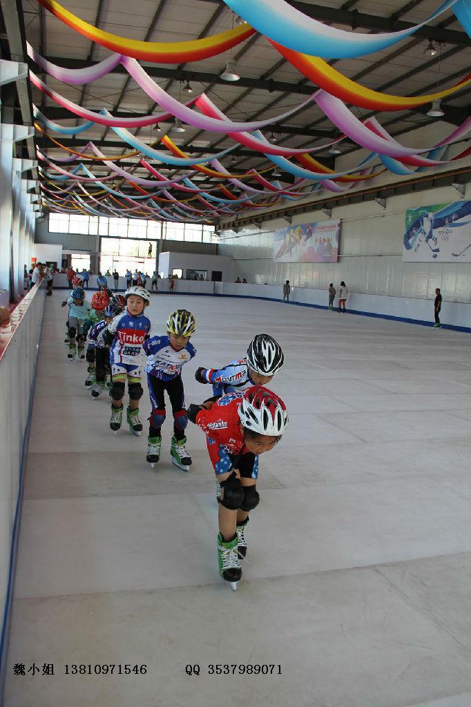 場地優勢:仿真冰 場適用于任何水平地面,包括平滑的的室外和大理石磚鋪設的商場地面,不受場地、季節和氣溫的限制,隨時都可以進行冰 上運動項目的訓練。