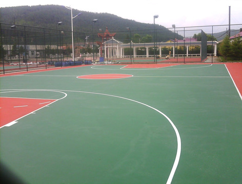 基礎(chǔ)處理:對施工現(xiàn)場進行基礎(chǔ)清掃,用8%左右的鹽 酸 水溶液對水泥基礎(chǔ)進行洗刷,再用清水沖洗干凈,而后晾干基礎(chǔ)要求平整度好,無裂縫、脫皮等情況,瀝青混凝土要求有足夠的強度及密實度。如是水泥混凝土基面的,要在其表面做一道底漆處理。新水泥基礎(chǔ)需在無降水天氣中曝曬20天以上,待水泥地中水份充分蒸發(fā);舊的水泥地面需進行打磨和補平,保證地面光滑無粉 塵,增強球場硅pu層與水泥地面的粘和性