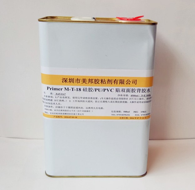 m-t-18是專用于硅膠\pu\pvc背膠的表面處理劑 ,能有效改善材質的表面極性,大大提高粘接性能,處理后的硅膠\pu\pvc可以用于背雙面膠,同時處理后在硅膠\pu\pvc上噴漆、絲網印刷亦有良好效果。具有初粘力強、粘結強度大、使用方便等特點。