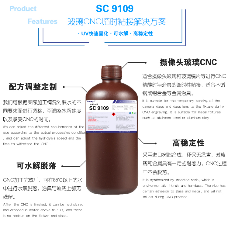 以上是東莞市三夏新材料有限公司廠家直供玻璃切割cnc水解uv膠研磨臨時粘接膠水的詳細信息,如果您東莞市三夏新材料有限公司廠家直供玻璃切割cnc水解uv膠研磨臨時粘接膠水的價格、廠家、型號、圖片有什么疑問, 請 聯系供應商 或 請供應商聯系我