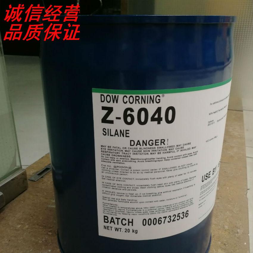 美國dow corning®道康寧z-6040/ofs6040偶聯劑 :cas: 2530-83-8 環氧基三甲 氧基硅烷偶聯劑 /玻璃漆密著劑 /附著力促進劑 ,100%有效成分,零voc,不含重金屬,適用于環氧樹脂、醇酸 、酚醛 樹脂、丙烯酸 樹脂、尼龍等,作為玻璃涂料(油墨)、金屬漆、膠粘劑 等附著力。產品水解穩定性好,能直接添加到樹脂體系中,有效的提高漆膜的柔韌性,提高玻璃、陶瓷、金屬基材(不銹鋼、鋁合金、鋅合金)附著力、耐水煮、耐酒精、耐鹽 霧、防腐蝕,并具有不黃變的性能,透明度高。可用于自干、低溫烘烤型、彩晶玻璃金屬涂料油墨。增強水性玻璃漆/油墨、水性金屬漆(不銹鋼、鋁合金)附著力,水性玻璃漆密著劑 ,提高耐水耐鹽 霧。