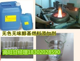 添加劑 特性:無色無味化學液體,(主要作用:提高甲 醇溫度與熱值,減少甲 醇揮發,減少甲 醇異味、減少腐蝕性,改變燃燒火焰顏色,起到耐燃燒耐高溫的效果,降低甲 醇燃料的成本)