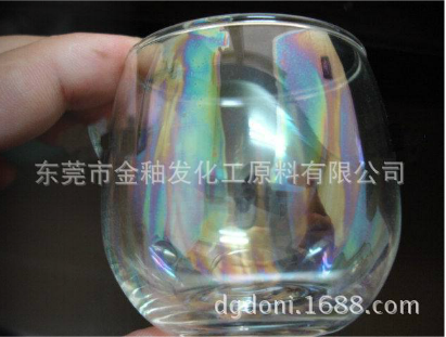 【施工方式】熱噴五彩水使用時(shí),用噴槍把材料噴到預(yù)熱好的540-580度熾熱的玻璃工件表面,玻璃表面瞬間即形成閃亮的五彩虹效果,經(jīng)過退火而成。冷噴五彩水使用時(shí),用噴槍或毛刷刷在清潔的玻璃工件上,放入窯爐,從室溫慢慢升到540-580度的高溫,恒溫10-20分鐘后退火而成。