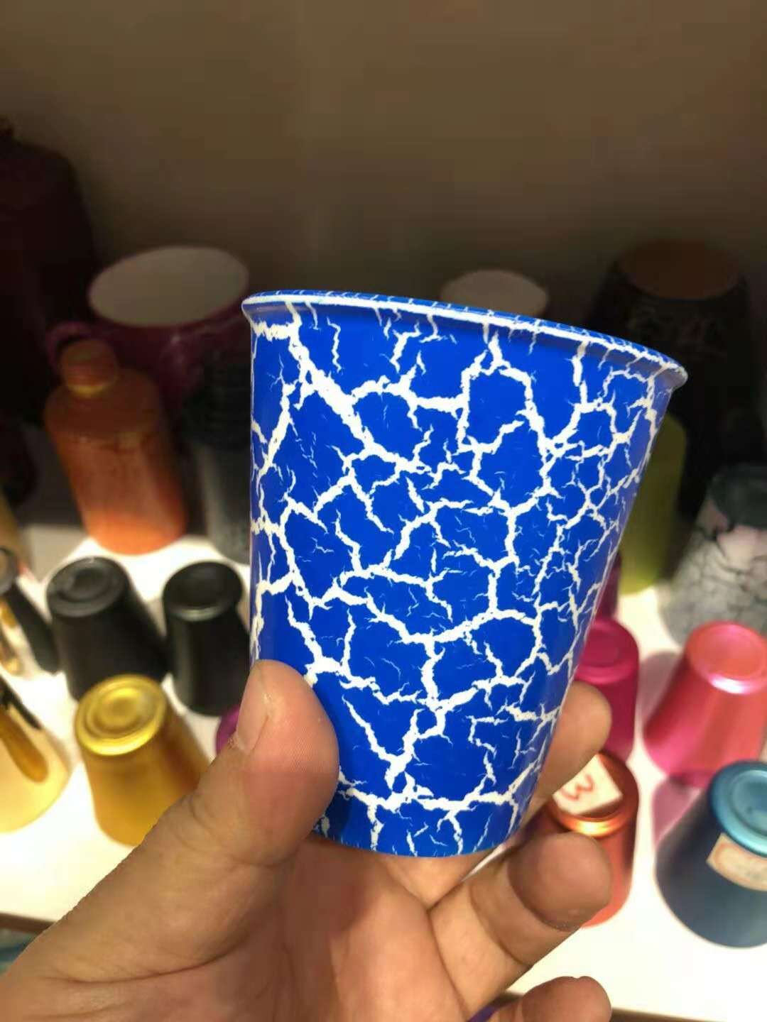 3.取若干裂紋漆,再加入10-20%的凈水稀釋(加水份量至不流掛為準),攪拌均勻后即可噴涂到上好光油的玻璃、陶瓷上。烘烤溫度為160度-170度,恒溫20-30分鐘。