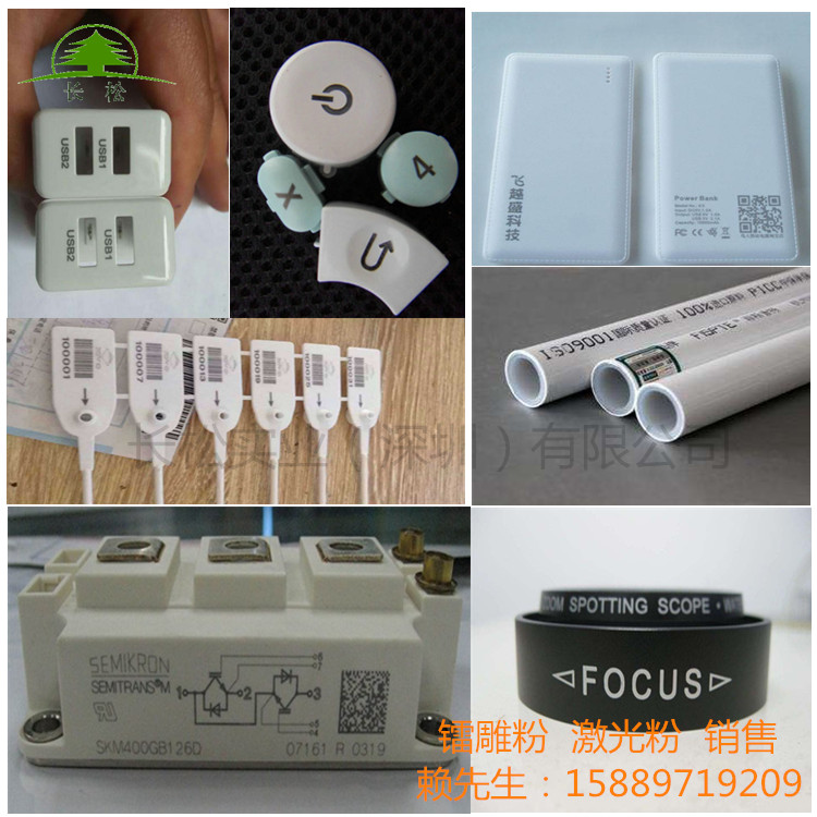 用塑料材料做成的部件難免會要標記上一些logo、圖文、字體之類的廠家信息以及產品參數使用說明等。但由于塑料材料基材的限制,用激光標記時會出現標記圖文模糊不清晰,識別度不高等問題。加入了塑料鐳雕粉 后效果會提升很明顯,很好的解決了上述問題,并且對基材本身的物性指標基本上沒有任何影響。塑料鐳雕粉 適用于各類塑膠塑料制品鐳雕效果不理想,字體顏色不美觀,或者鐳雕不上,同時可提高激光鐳雕打標速度,提高打標效率,提高產量,增加效益。塑料鐳雕粉 適用范圍包括pp,pc,pbt,pa,tpu,ps,pe,abs等樹脂產品激光鐳雕黑雕白,黑雕金,彩雕黑,白雕黑。注塑成型時加入塑料鐳雕粉 ,也可以直接和塑膠粒抽粒成鐳雕料即可。