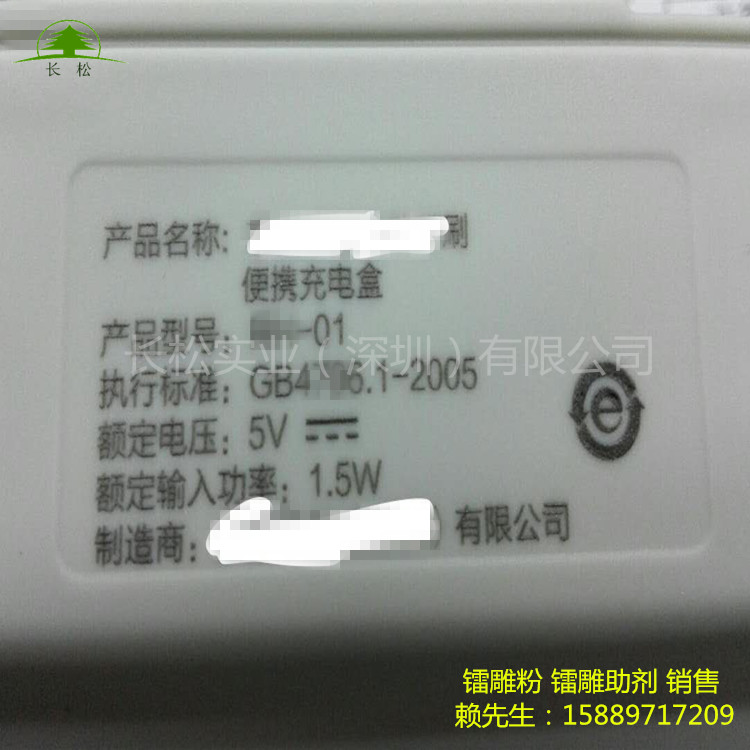 用塑料材料做成的部件難免會要標記上一些logo、圖文、字體之類的廠家信息以及產品參數使用說明等。但由于塑料材料基材的限制,用激光標記時會出現標記圖文模糊不清晰,識別度不高等問題。加入了塑料鐳雕粉 后效果會提升很明顯,很好的解決了上述問題,并且對基材本身的物性指標基本上沒有任何影響。塑料鐳雕粉 適用于各類塑膠塑料制品鐳雕效果不理想,字體顏色不美觀,或者鐳雕不上,同時可提高激光鐳雕打標速度,提高打標效率,提高產量,增加效益。塑料鐳雕粉 適用范圍包括pp,pc,pbt,pa,tpu,ps,pe,abs等樹脂產品激光鐳雕黑雕白,黑雕金,彩雕黑,白雕黑。注塑成型時加入塑料鐳雕粉 ,也可以直接和塑膠粒抽粒成鐳雕料即可。