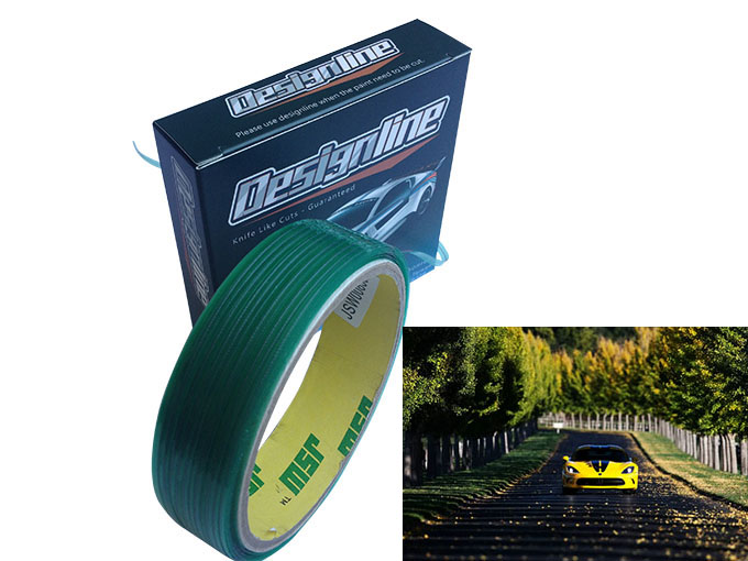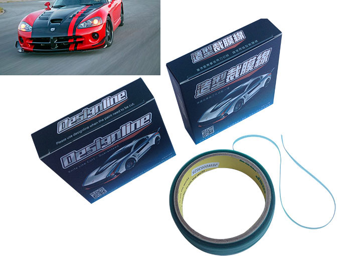 改色膜裁膜線貼膜流程:拉開裁線膜膠帶,根據設計圖案形狀的線路貼在車漆表面(改色膜裁膜線膠帶中的細線就是做出的實際形狀)。再貼上車膜,車膜邊緣應留出100mm左右的膠帶,以便拉出改色膜裁膜線切割細線。右手拉住膠帶,在車膜邊緣留下5mm左右的膠帶。用手指壓住改色膜裁膜線和車膜邊緣,瞬間用力快速拉扯膠帶,開始切開車膜。沿著膠帶拉出細線,保持動作平穩,并使改色膜裁膜線細線與車膜保持大約45度角。揭掉車車膜邊角料。輕易地拉出車膜底面的殘留改色膜裁膜線膠帶。完美的造形即刻呈現。