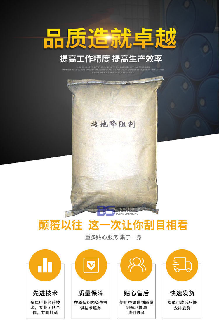 1、使用導(dǎo)電型無機(jī)硅酸 鹽 類材料,屬于長效物理型降阻劑 。