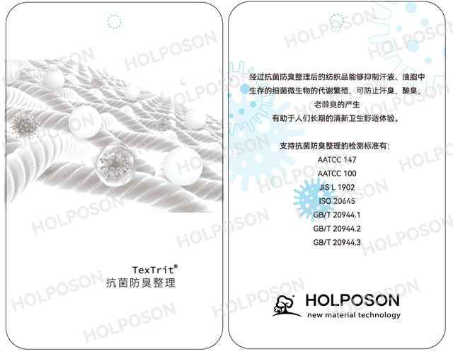 抗菌防臭整理劑 HOLPOSON®CAPTAIN A-C是一種有機胍類高分子抗菌整理劑 。適用于如棉、黏膠、滌綸、尼龍等天然、合成及其混紡織物。主要應用在服裝、家紡、墻布、地毯、醫 用防護無紡布等產品.