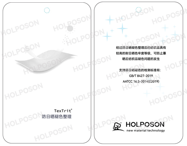 由日本旭硝子株式會社針對車輛內(nèi)部的裝飾材料的耐光牢度要求非常嚴(yán)格而開發(fā)的產(chǎn)品,加工時除了對染料進(jìn)行選擇外,一般還使用紫外線吸收劑 來提高耐光牢度。