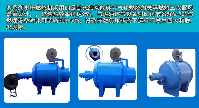 1. 本設備原料適應性強,木粉 ,竹粉 ,煤粉 混燒,稻殼粉 ,棕櫚殼粉 等 60目-120目以內原料可直接燃燒。