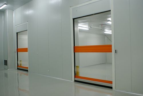 快速門(mén)工作過(guò)程:由開(kāi)門(mén)傳感器提供觸發(fā)信號(hào)給控制系統(tǒng),控制系統(tǒng)根據(jù)快速卷門(mén)的當(dāng)前位置發(fā)出指令給變頻器,啟動(dòng)驅(qū)動(dòng)電機(jī)使門(mén)簾快速上升,車輛行人通過(guò)后門(mén)簾自動(dòng)下降,關(guān)閉通道,直到下一個(gè)開(kāi)門(mén)信號(hào)再次打開(kāi)。顧名思義,快速卷門(mén)升降速度非常快,不能像鋼制卷閘門(mén)一樣直接啟動(dòng)停止,一般需要變頻器來(lái)控制電機(jī)的轉(zhuǎn)速。上升時(shí)越快越好,快到位時(shí)(20cm左右)需要有一個(gè)減速緩沖停止過(guò)程,以防止撞擊軌道,防止夾人,降低噪音,這也是衡量快速卷門(mén)性能好壞的一個(gè)標(biāo)準(zhǔn)。
