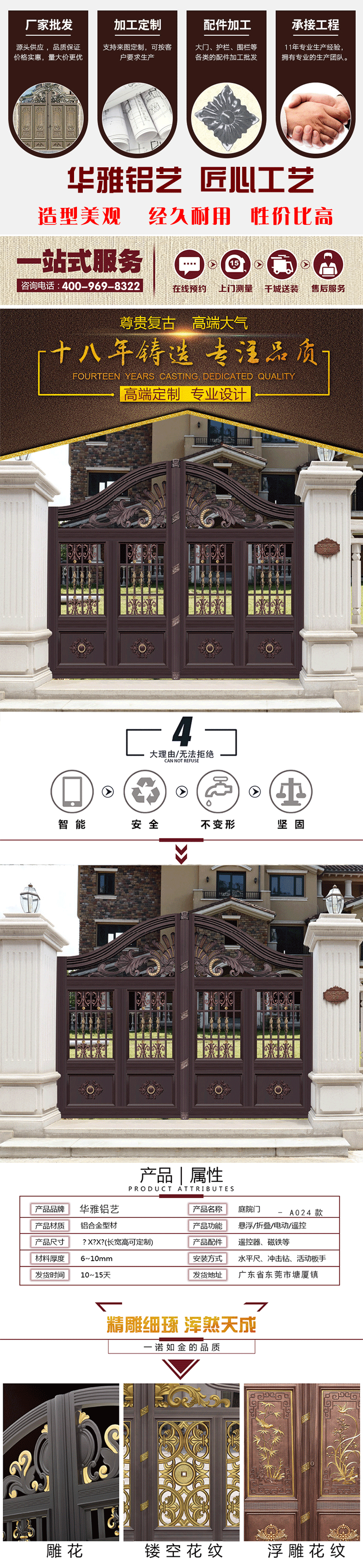 以上是東莞市華雅金屬制品有限公司廠家直供鋁藝臺門 鋁藝大門 庭院門 別墅大門 圍墻大門 定制門 鋁藝的詳細信息,如果您東莞市華雅金屬制品有限公司廠家直供鋁藝臺門 鋁藝大門 庭院門 別墅大門 圍墻大門 定制門 鋁藝的價格、廠家、型號、圖片有什么疑問, 請 聯系供應商 或 請供應商聯系我