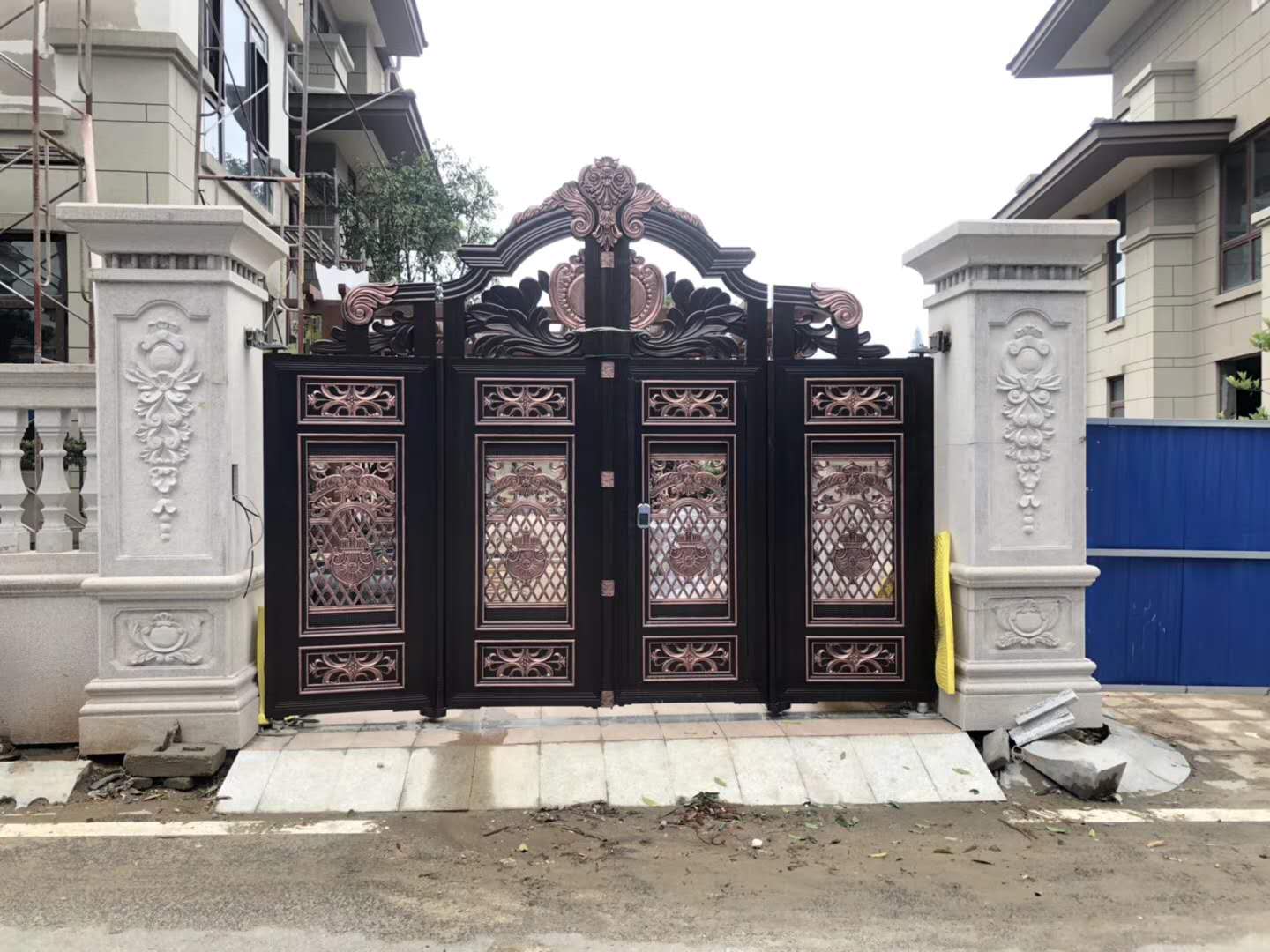 鋁藝大門定制定期檢查經常檢查鋁合金框墻體結合處,日久如有松動極易使框架整體變形,使庭院大門無法關閉,密封。 成都鋁藝大門定制 成都鋁藝大門定制技術靈活性強鐵藝;距今已有上百年的歷史,鋁藝;距今也有幾十年的歷史.