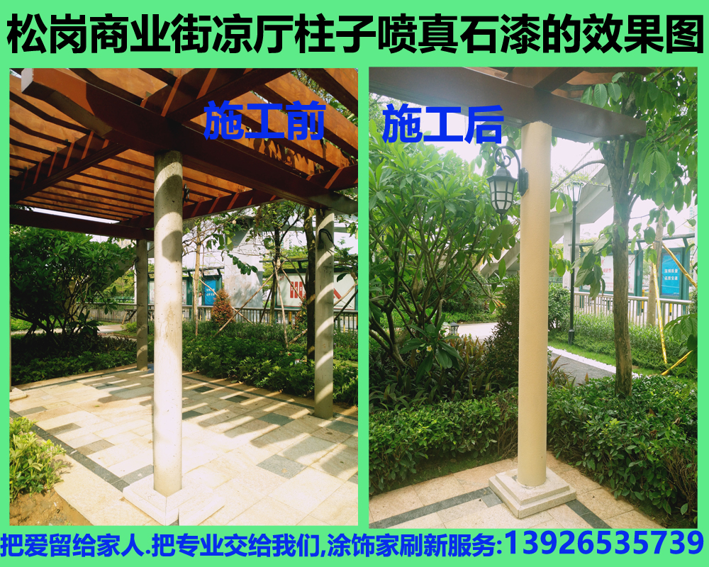 當我們走在社區的公園里,旅游的景區時,熱鬧城市的休閑街,或許你會看到,一根根造型不同的羅馬柱出現在我們的眼前,涼廳供我們休息的時候享受著溫暖的涼風吹來,把我們一天的疲勞和煩腦都吹走時,欣賞著眼前綠色的環境,聞著各種的花香,或許這就是生活,而這些柱子涼廳經過了多年的風吹日曬,時間舊了就會漸漸的失去了它之前的美,而涂飾家刷新服務我們可以做到,讓他們重新換發青春。讓它們變得更美,生命力更久遠。