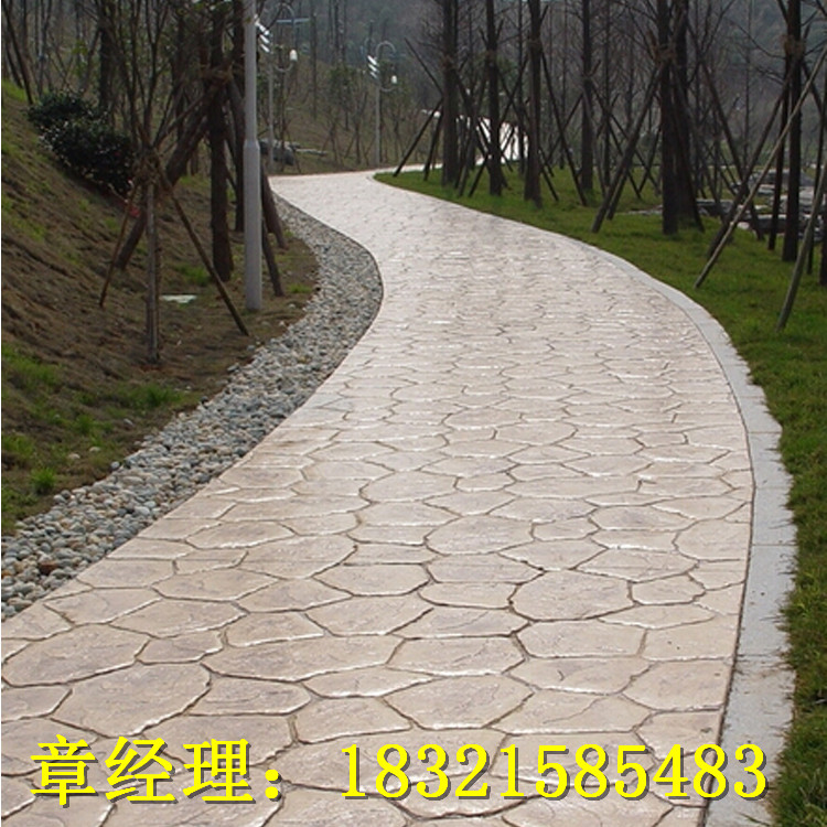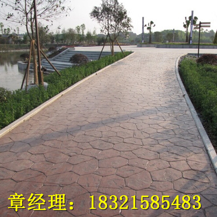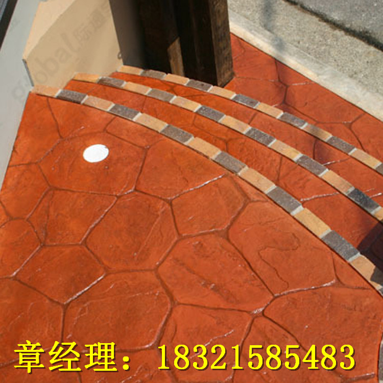 2、用本強化劑 材料制作的彩色壓模地坪具有耐磨、防滑、抗凍、不易起塵、易清潔、高強度、耐沖擊、且色彩和款式方面有廣泛的選擇性、成本低和綠色環保性等特點,是目前園林、市政、停車場、公園小道,商業和文化設施領域的理想選擇。