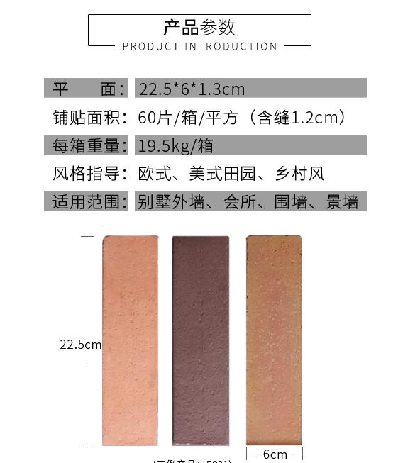 產品描述:外形是有規則長方形,棱角分明,長短、大小、厚薄勻稱,是在坯料中加以顆粒,在切割時自然產生拉絲,從而使磚的表面具有顆粒和凹坑的質感。