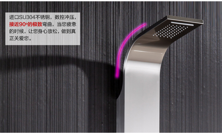 多檔獨立控制開關設計--配置進口閥芯,使用更方便,更快捷,使用壽命更長,使用壽命是普通花灑的5倍以上!進口超厚304無鉛不銹鋼一體成型--永遠不生銹,豪華頂噴、動感瀑布、按摩背噴、手持花灑多功能出水設計,出水量大,按摩效果好,讓您感受多種淋浴體驗!