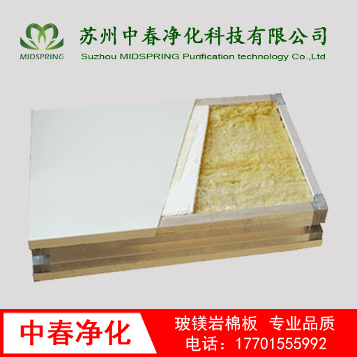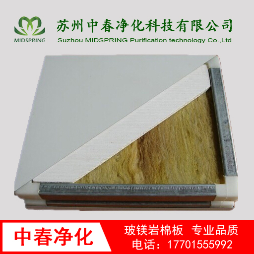 3)玻鎂板:采用5mm后玻鎂板平鋪在巖棉上,增強巖棉夾芯板的抗彎曲強度和平整度。