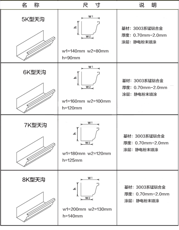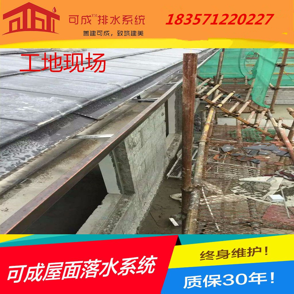 本公司以優(yōu)質(zhì)的產(chǎn)品,良好的信譽(yù),真誠的服務(wù),與廣大用戶攜手共進(jìn),開拓廣闊的前景。杭州可成建材科技有限公司是一家專業(yè)屋面落水系統(tǒng)解決方案提供商,集生產(chǎn),研發(fā),銷售成品天溝、pvc檐溝和金屬落水系統(tǒng)的企業(yè)。 天溝系統(tǒng)(或稱成品檐溝系統(tǒng))能有組織地將雨水合理地排離建筑物而防止對屋面,墻面和地基造成損害,因而是現(xiàn)代別墅及多層建筑的必選產(chǎn)品。成品天溝系統(tǒng)在歐美國家廣泛使用。簡潔的造型和流暢的排水性能使其成為成品天溝系統(tǒng)中的經(jīng)典。k形天溝落水系統(tǒng)主要用于別墅和小型商業(yè)(公共)建筑多層公寓以及中型商業(yè)(公共)建筑。性價(jià)比高:受力構(gòu)件可承受30公斤的力,大幅度增加受力安 全性,并且配置更少,減少總造價(jià),性價(jià)比更高;安 裝易學(xué)便捷:配件少,安 裝易學(xué),配件間連接自然可靠 。 本公司以優(yōu)質(zhì)的產(chǎn)品,良好的信譽(yù),真誠的服務(wù),與廣大用戶攜手共進(jìn),開拓廣闊的前景。