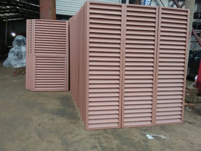 外墻百葉安 裝在外墻上既可以裝飾又能通風和防水,既可以裝飾高檔小區可做空調機外罩,外型美觀。外墻百葉采用高強度鋁合金材料制作而成,具有強度高、易安 裝、外形美觀等特點。其主體結構根據室外空調主機尺寸定做為開口框架形式,有利于氣流的流動,減少風力對框架的直接作用力,框架之間百葉的連接,大大增加外墻空調百葉框架的強度。克服過去大面積外墻百葉受風力或氣壓影響出現的脫落現象。廣泛用于美化小區樓盤,遮掩室外空調主機,美化樓宇建筑的外觀。