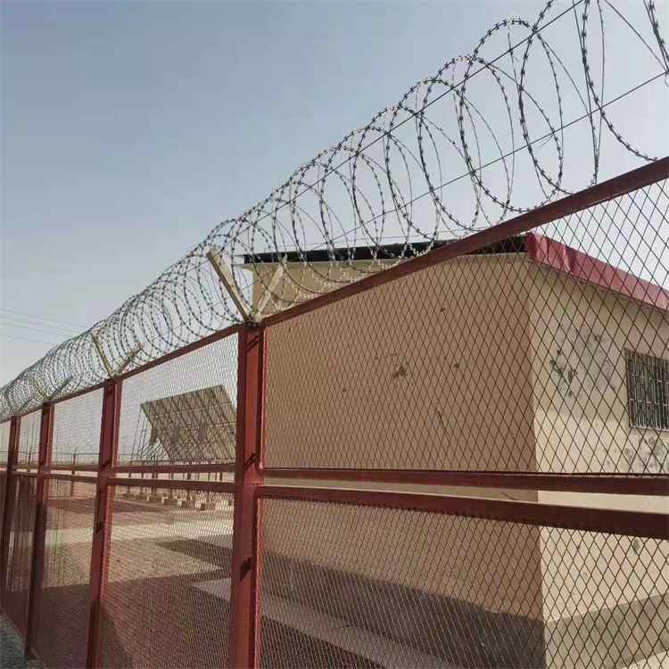 特點:采用熱鍍鋅鋼板、不銹鋼鋼板沖壓而成,并將刀片焊接到芯線之上牢固結實。籬笆刀片刺繩具有網面平整、網孔均勻、焊接牢固、美觀大方及高強嚇阻等特點。高張力芯線、鋒利的高防腐刀片可以起到很好的安 全防護、震懾、防攀爬等功能。