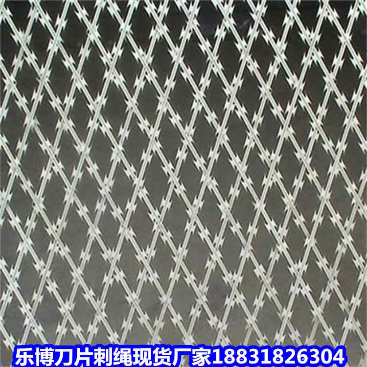 螺旋型刀片刺繩是刀片刺繩成螺旋狀,是在兩條刀片刺網之間以不銹鋼片和鍍鋅鋼片強力夾扣,展開后即呈交叉狀,美觀又實用,卷經大小可供選擇,圈數也可供選擇,大小均可定做,具有防腐、防老化、抗曬、耐用等特點,防腐蝕,比一般鐵絲使用壽命更長,這種是日常生活中常見,也是應用廣的刺繩,
