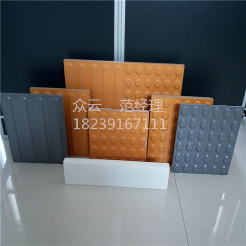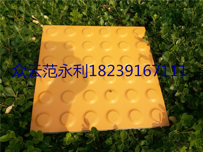 眾云盲道磚、導盲磚簡介:盲道磚又稱盲道塊、盲道板、盲道片。是專門為盲人設計的地磚,防止盲人走錯道路,摔倒時防止摔傷。盲道磚是按照國際殘聯的有關標準制造的,設計優良,具有靈敏的觸覺感,耐強腐蝕,耐損耗性和長壽命等特征。這種高強塑料盲道磚的表面既美麗又光滑,適用于室內或室外裝修。它凹凸的模型不僅可以使盲道更加安 全,同時還美化環境作用。在施工期間,安 裝的方法也非常簡單和方便,撲上膠水即可。
