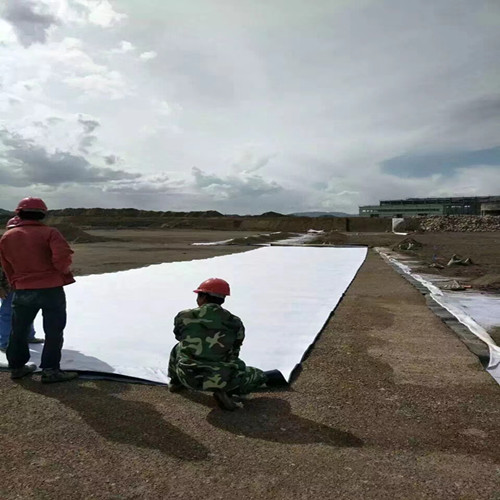 一布一膜是在無紡土工布的一邊熱復合上一層聚乙烯薄膜而制成的土工防滲材料。用于一布一膜的布一般有:短纖土工布、長纖土工布、編織布.復合用的聚乙烯薄膜厚度從0.20毫米到1.50毫米,膜的顏色分為:白色和黑色。單位面積質量從300克到2600克/平方米,