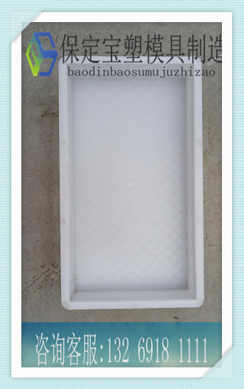 【產(chǎn)品概述】這款模具是一款很常用的廣場磚便道磚模具,以長方形為基準(zhǔn),長40厘米、寬20厘米、高5厘米,模具表面設(shè)計(jì)了魚鱗紋路,這種紋路不僅美觀,還起到了很好的防滑作用,更人性化的保護(hù)了行人的安 全。客戶還可根據(jù)路面使用效率,定制特殊厚度的彩磚模具,寶塑支持客戶開模。