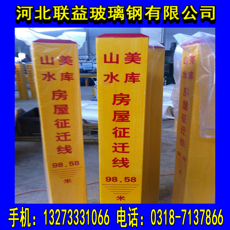 3、玻璃鋼標志樁顏色艷麗、抗老化、強度好,使用壽命可達30年以上。