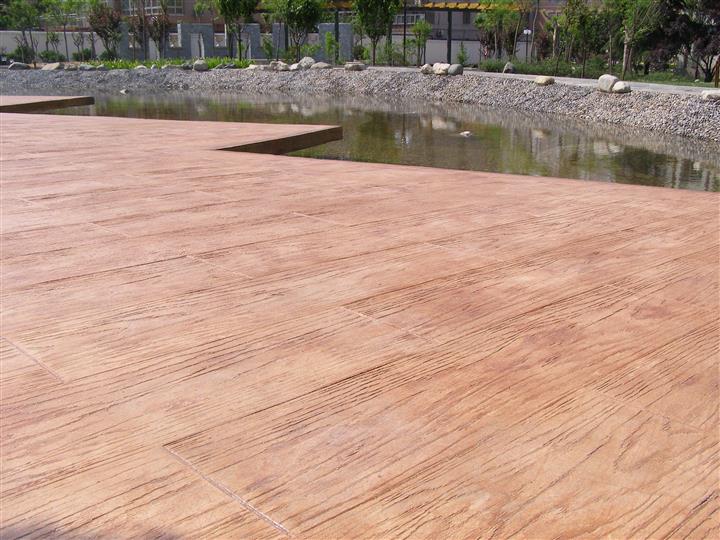 *現(xiàn)場彩色壓模地坪紋理與基層渾然一體,解決了常規(guī)鋪裝難以克服的表層松動和中空造成的易破裂現(xiàn)象;