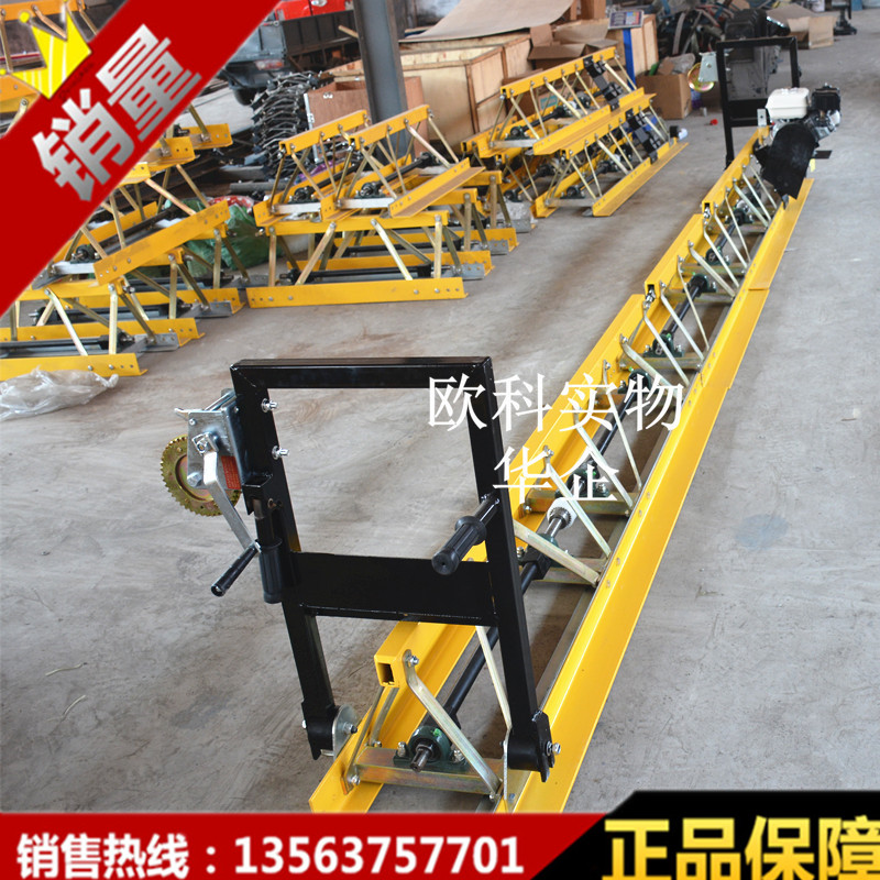 框架式混凝土振動梁主要用于混凝土地面的提漿、振實、整平(中間還可以起拱),是修建橋梁、公路、車間、廣場的新型設備,整體框架采用全鋼結構,堅固抗震,汽油機動力和電動機可任意選擇。