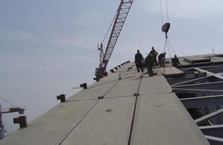 鋼骨架輕型屋面板主要有輕鋼架、冷拔低碳鋼絲、輕質無機復合芯材及復合抗滲涂層組成,采用獨特工藝澆注成型的建筑輕型復合板材,獲得國家專利,并列入國家建筑高新技術產品。鋼骨架輕型屋面板節點設計合理,安 裝快捷,維護方便,板型靈活,不受固定模具限制,可以按照建筑設計要求配板,最大限度滿足用戶需要。本產品銷往國內三十多個省市、自治區,并出口東南亞、東歐、澳洲等十幾個國家。
