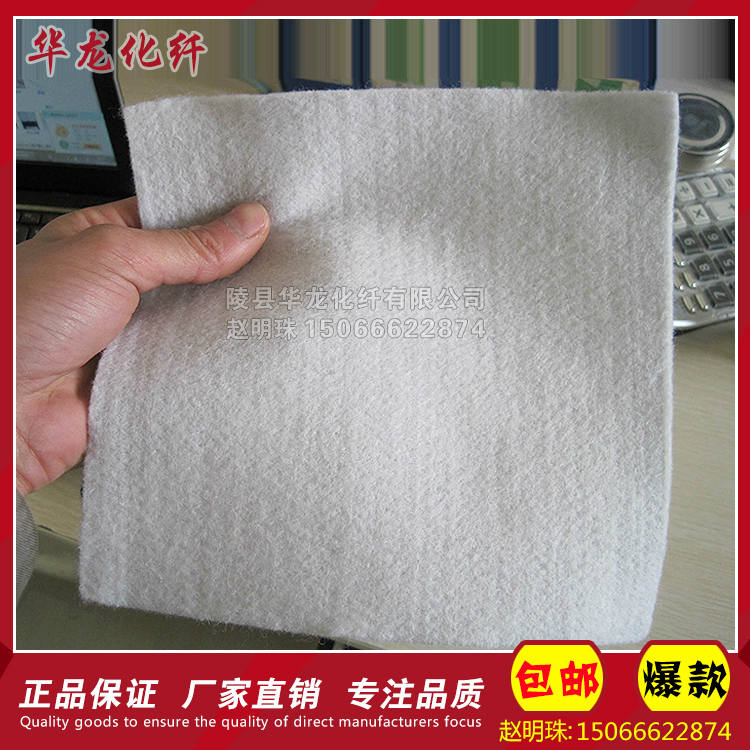 滌綸短纖針刺土工布具有良好的導(dǎo)水性能,它可以土體內(nèi)部形成排水通道,將土體結(jié)構(gòu)內(nèi)多余液體和氣體外排。