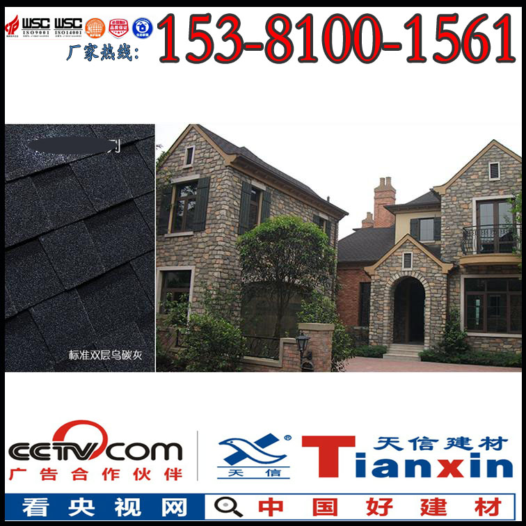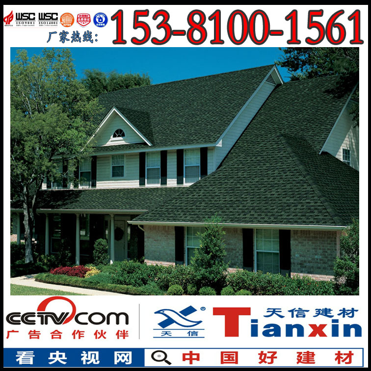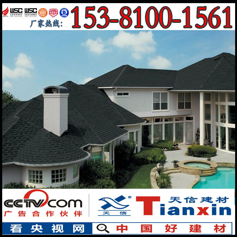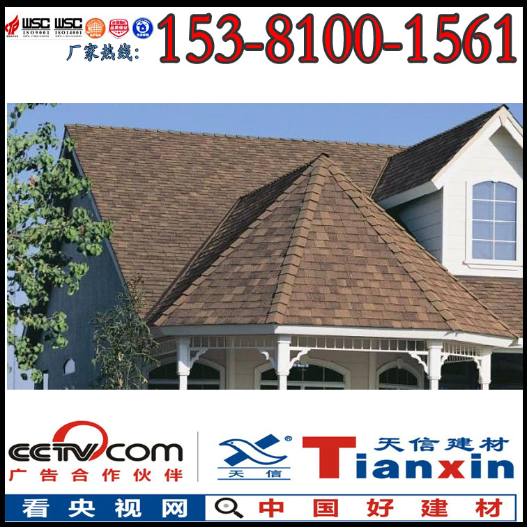 天信瀝青瓦全部采用單位面積質(zhì)量為95g/m2的一等品玻璃纖維氈為胎基,此為國產(chǎn)瓦中的高標(biāo)準(zhǔn)產(chǎn)品。