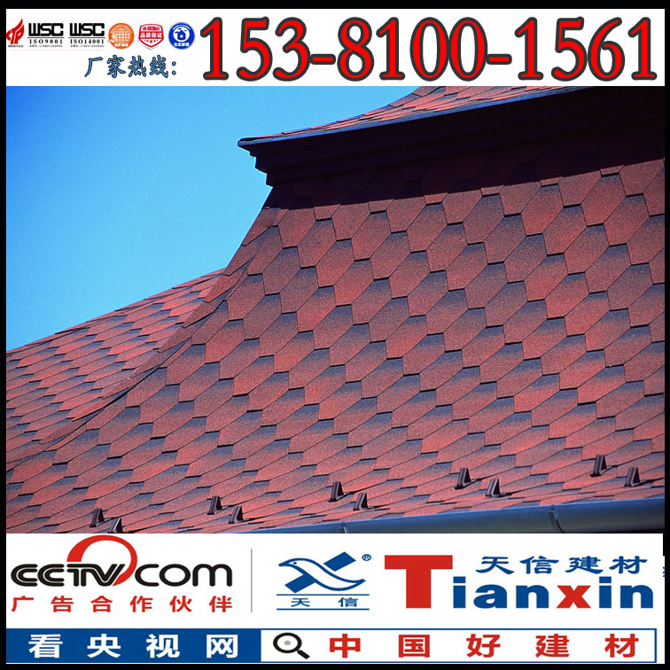 二、玻纖瓦也叫油氈瓦或瀝青瓦,故名思義,玻纖瓦是由改性瀝青、玻璃纖維、彩色陶粒、自粘膠條組成。其瓦特點為輕,每平方米在10kg左右,且其材質為改性瀝青,只要安 裝方法得當,防水性能可達到較好效果,特別適合平改坡項目或木結構房子;由于玻纖瓦施工簡便,施工損耗基本可以忽略不算,所以也增強了其市場競爭力,可為開發商節約工程造價。玻纖瓦顏色多樣性,安 裝在屋面后其美觀效果特別強,現我國主要在江浙一點相對流行使用玻纖瓦