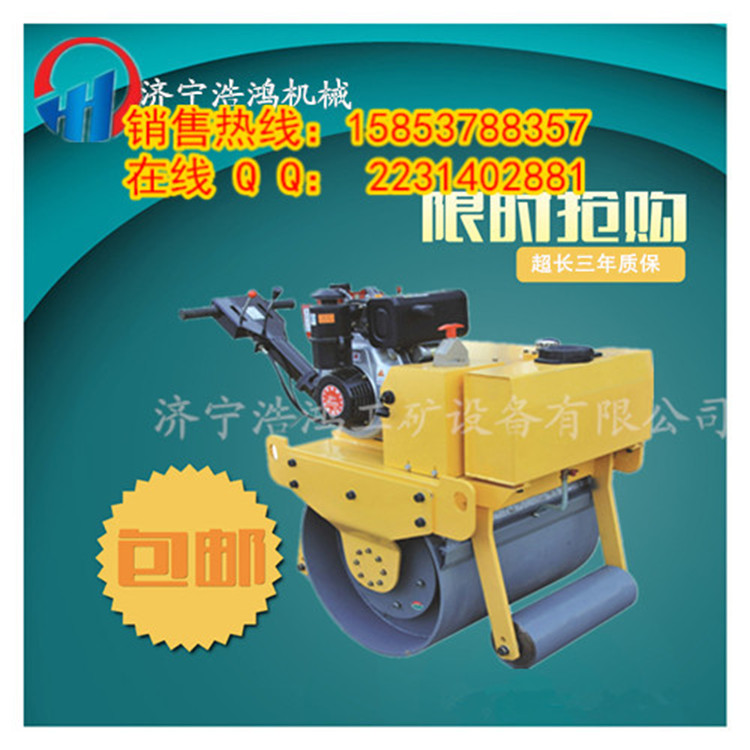 型號:hh-600型(關鍵詞:手推單輪壓路機 手扶小型振動碾,柴油小單輪,路面單輪壓實機 壓路機型號,壓路機價格,手扶式單輪壓路機,單輪柴油壓路機,單輪汽油壓路機,小型柴油壓實機,小型壓路機廠家!)總重量: 315kg 輪寬: 600mm輪徑: 430mm行走速度: 0-3km/h 振動頻率: 70hz 激_振力: 1.8噸(也就是18kn) 壓實力度瀝青 10cm泥土 15cm可爬 坡度 30度發動機gx160型汽油機cg170f常發柴油機發動機功率5.5馬力6馬力 燃油油箱大小為5l ;液壓油 箱大小為19l; 水箱大小為 12l