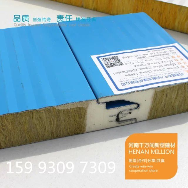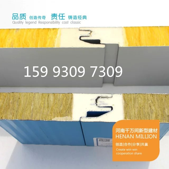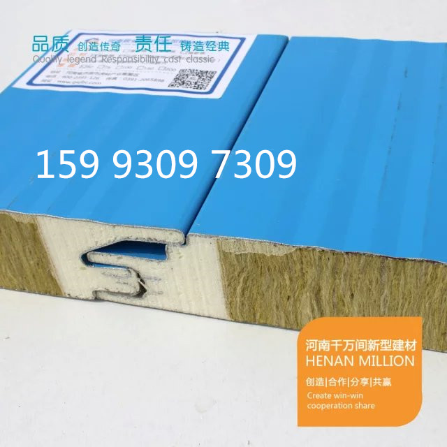 千萬間新型防火巖棉夾芯板是選用兩層高品質的彩色涂層鋼板或其他精密壓型的金屬板材做面板,輥壓成型后,將分條后的巖棉90度翻轉(使其纖維垂直于上下兩層鋼板),通過高強度的、高粘結力的、高防火的粘結劑 ,將優(yōu)質巖棉與金屬面板強力粘接,復合而成美觀、平整、剛韌的建筑板材。成型后的板材具有優(yōu)良的防火、保溫、環(huán)保等特點,為工業(yè)建筑圍護系統提供了一個絕佳的選擇。